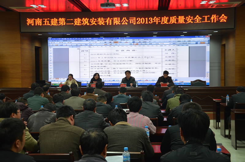 3月15日下午,公司在信陽市行政審批中心五樓會議室召開 “2013年度質(zhì)量安全工作”會議。公司二級機構(gòu)負責(zé)人、項目經(jīng)理、技術(shù)負責(zé)人、質(zhì)檢員、安全員近百人參加了會議。會議由貫標(biāo)科科長劉萍主持。