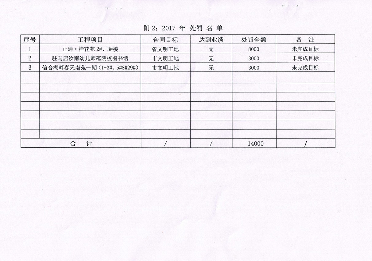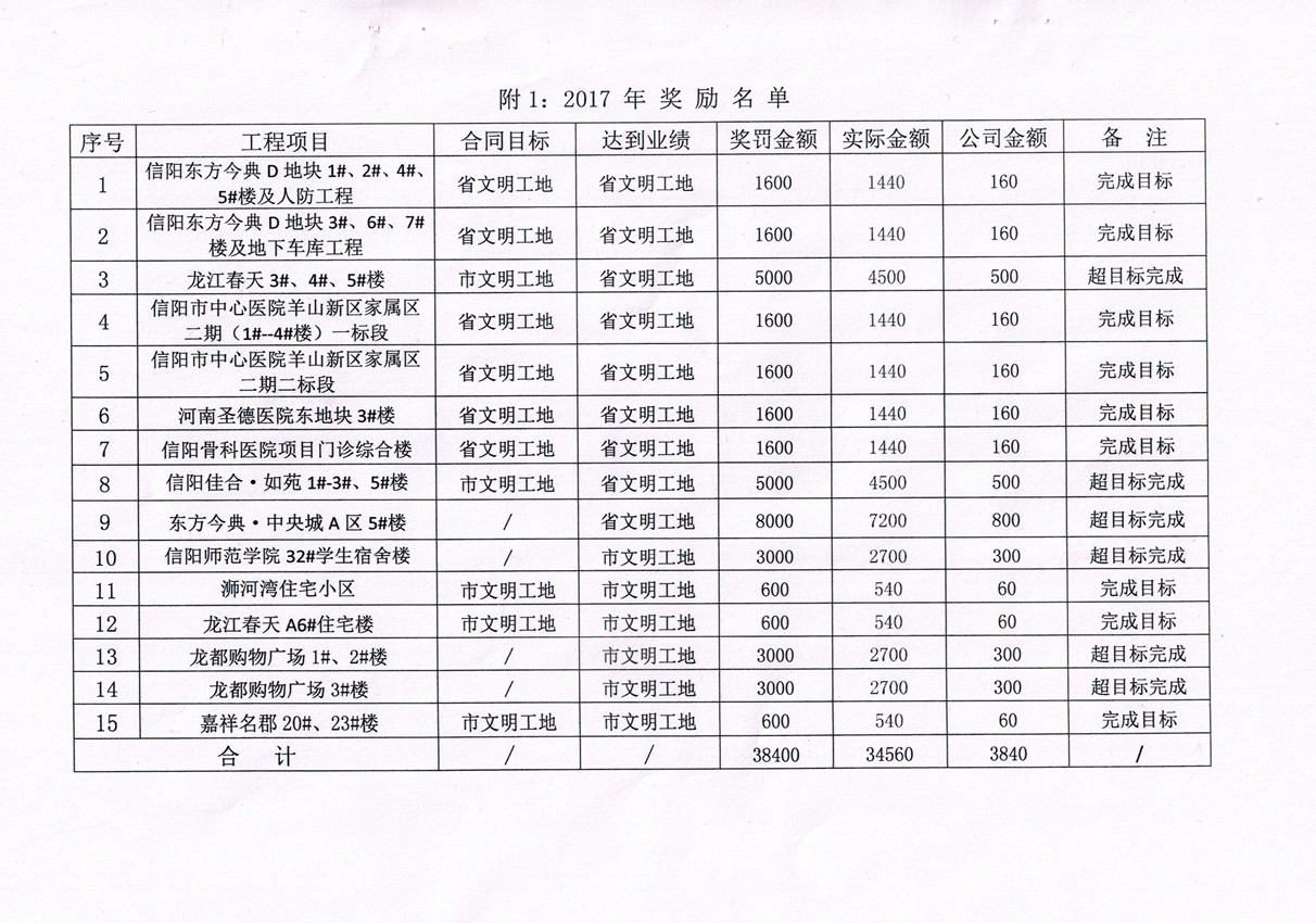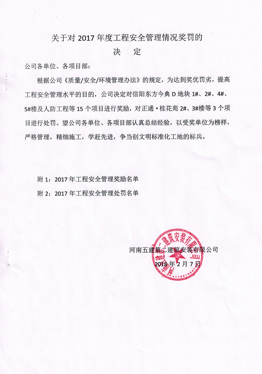 關(guān)于對(duì)2017年度工程安全管理情況獎(jiǎng)罰的決定