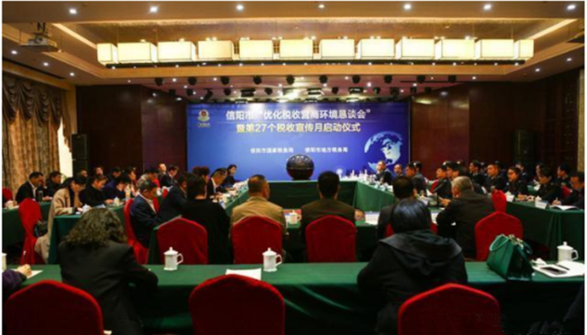公司主要領(lǐng)導(dǎo)受邀參加信陽市“優(yōu)化營商環(huán)境懇談會”暨第27個稅收宣傳月啟動儀式