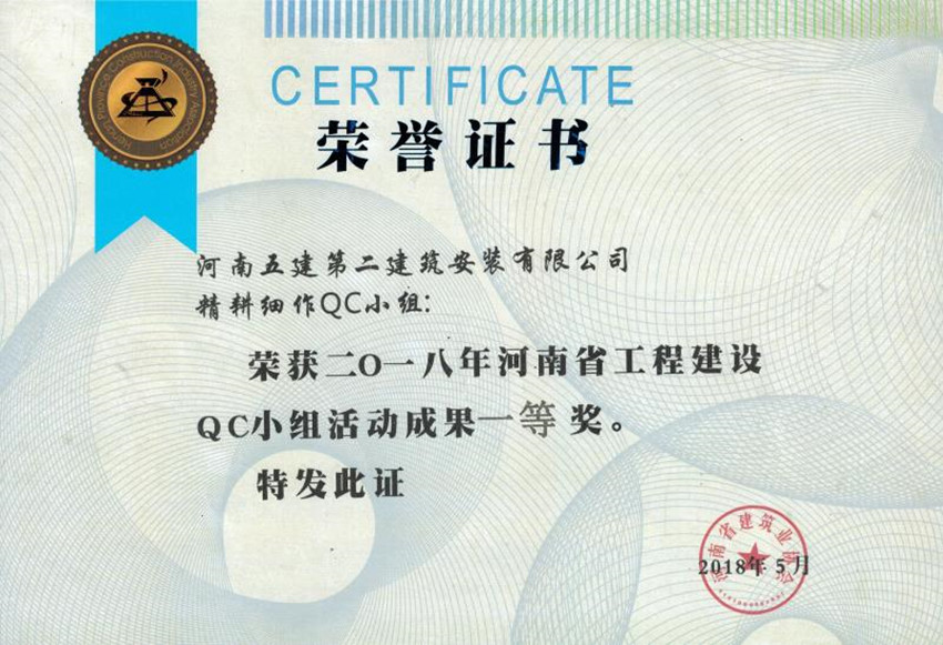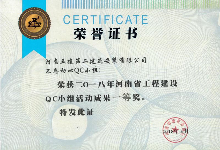 近日,河南省建筑業(yè)協(xié)會2018年工程建設(shè)優(yōu)秀QC小組活動成果交流會在三門峽市召開,在此次的發(fā)布活動中,公司再創(chuàng)佳績,推薦5個QC成果,其中3個獲得了省級一等獎、2個獲得了省級二等獎。