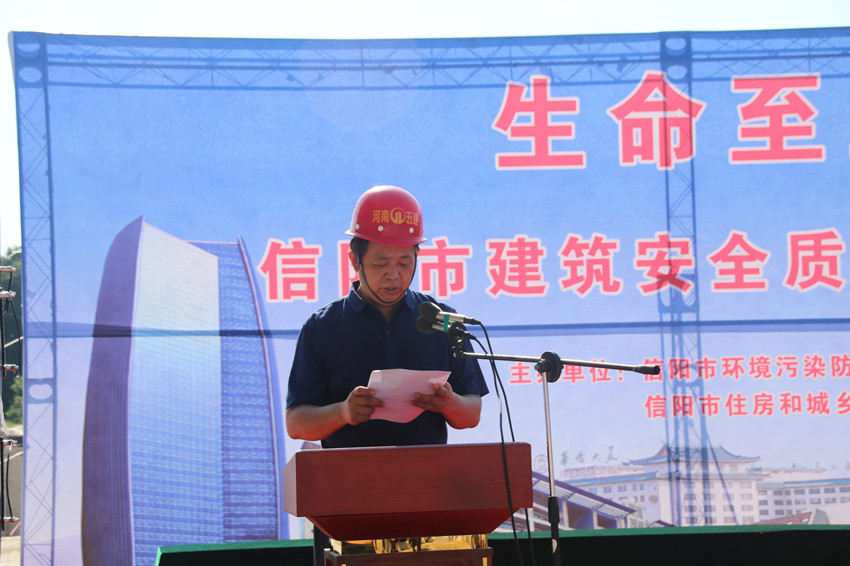 公司副總經(jīng)理吳建功代表信陽市建筑企業(yè)在主會場發(fā)表了題為《抓管理加強揚塵治理 控安全保持碧水藍天》的講話,吳總強調(diào):管理工作要嚴抓、安全生產(chǎn)要可控、揚塵防治要落實,在現(xiàn)場工作中,各項管理要動態(tài)化,措施落實日?;?,才能有效的完成各項工作。