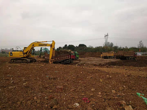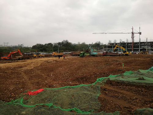 停車場(chǎng)A區(qū)分層碾壓區(qū):進(jìn)行回填土挖除工作。