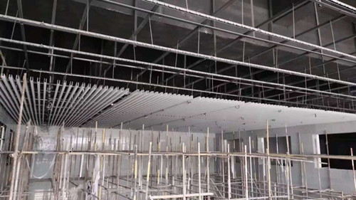 信陽(yáng)高鐵站前(快樂園)交通樞紐配套設(shè)施建筑工程位于信陽(yáng)高鐵站西側(cè),南北兩側(cè)為新七和新五大道,西側(cè)為規(guī)劃新三十六大街。工程地下二層,建筑面積為144740㎡,建設(shè)單位為信陽(yáng)高鐵片區(qū)規(guī)劃建設(shè)領(lǐng)導(dǎo)小組辦公室,結(jié)構(gòu)形式為框架結(jié)構(gòu)。地下一層為商業(yè)和旅客換乘中心,地下二層為停車場(chǎng)。我公司承接地下一層、二層裝飾裝修、水電安裝、消防安裝、電梯安裝等工程,工程造價(jià)為1.7億元。 1.吊頂班組,北落客區(qū)東側(cè)靠展廳坡道吊頂轉(zhuǎn)換層安裝完成約1000㎡、北落客區(qū)西側(cè)靠展廳位置完成吊頂轉(zhuǎn)換層安裝約1000㎡。
