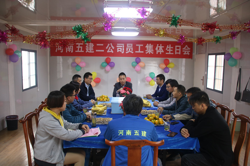舉辦集體生日會(huì)能夠促進(jìn)公司團(tuán)隊(duì)凝聚力,增加員工的歸屬感,推動(dòng)公司企業(yè)文化建設(shè)。未來,公司還將積極開展形式多樣、內(nèi)涵廣泛的集體活動(dòng),進(jìn)一步增進(jìn)員工之間的感情,體現(xiàn)企業(yè)的人文關(guān)懷,努力讓每一位員工都能感受到五建大家庭的溫暖,從而鼓勵(lì)大家努力拼搏,齊心協(xié)力同企業(yè)一起成長。