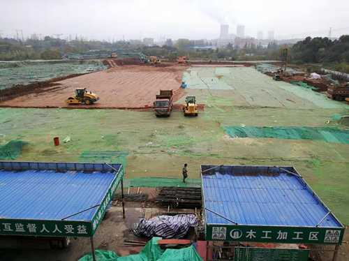 (2) 北區(qū)東側(cè)兩條停車線及道路管網(wǎng)施工完成,場地平整完成20%。