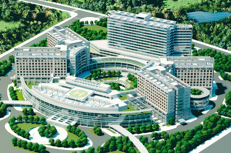 河南圣德國際醫(yī)院項目工程位于河南省信陽市羊山新區(qū)新五大道與二十六大街交叉處,分為1#樓、2#樓、3#樓和中心園4個區(qū)域,總建筑面積229374.m²,是圣德國際醫(yī)院有限公司投資興建的大型醫(yī)療綜合體,建成后將成為信陽市最大的民營醫(yī)院之一。