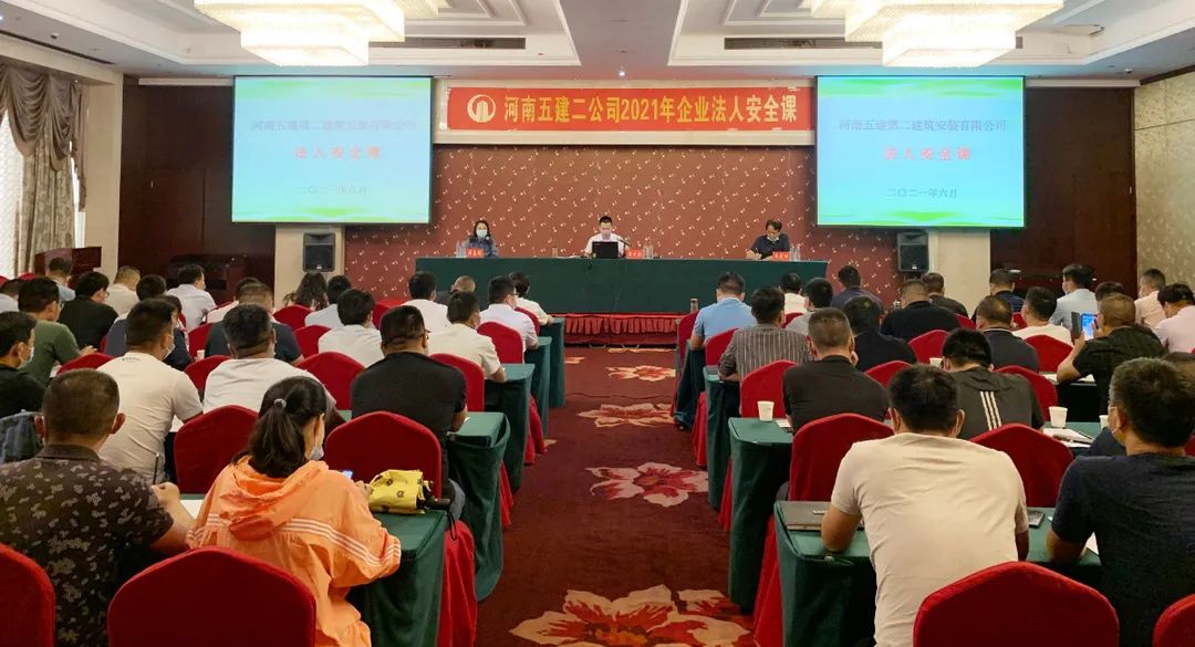 為全面深入開(kāi)展第20個(gè)全國(guó)“安全生產(chǎn)月”活動(dòng),日前, 河南五建二公司在中樂(lè)百花酒店三樓會(huì)議廳舉辦了2021年企業(yè)法人安全課,公司董事長(zhǎng)、總經(jīng)理吳萬(wàn)仁以法人代表的身份親自授課。公司董事會(huì)、經(jīng)理班子成員、各部門(mén)、二級(jí)機(jī)構(gòu)負(fù)責(zé)人及各項(xiàng)目部項(xiàng)目經(jīng)理、技術(shù)負(fù)責(zé)人、專職安全管理人員等共一百余人參加了課程。