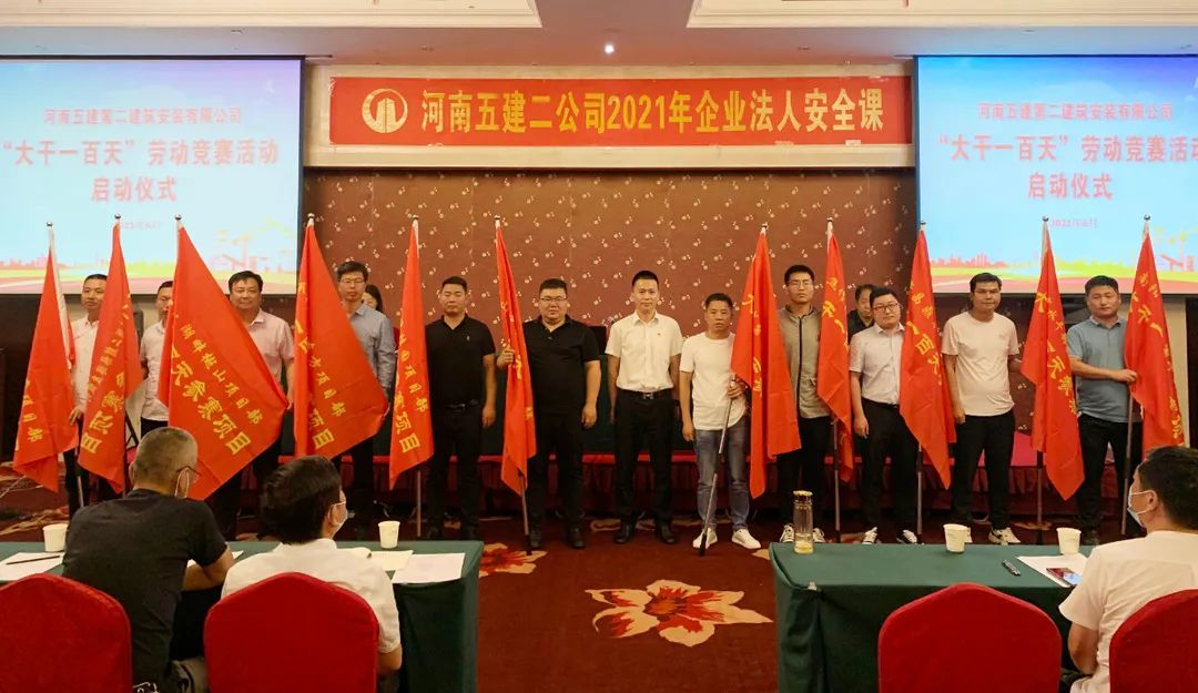 本次活動(dòng)還包括公司2021年“大干一百天”勞動(dòng)競(jìng)賽的啟動(dòng)儀式,公司副總工、工程部部長(zhǎng)吳善艷宣讀了競(jìng)賽活動(dòng)方案,此次勞動(dòng)競(jìng)賽活動(dòng)共有11個(gè)主體在建項(xiàng)目部參加,吳萬(wàn)仁董事長(zhǎng)親自為十一個(gè)參賽項(xiàng)目授旗并發(fā)表了動(dòng)員講話,勉勵(lì)參賽項(xiàng)目“大干快上”,爭(zhēng)創(chuàng)佳績(jī)。