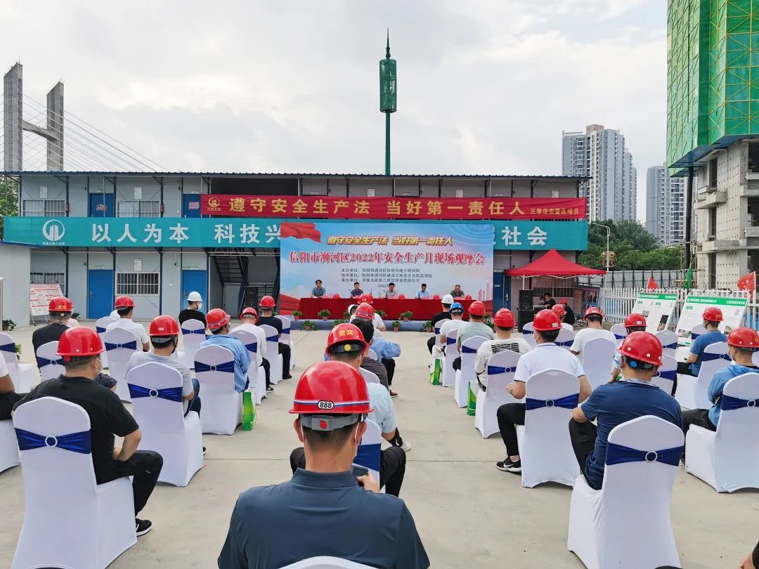 6月22日,信陽市浉河區(qū)2022年“安全生產(chǎn)月”現(xiàn)場(chǎng)觀摩會(huì)在公司第七項(xiàng)目部承建的信陽市浉河區(qū)城市有機(jī)更新安置區(qū)三里店片區(qū)建設(shè)項(xiàng)目順利舉行,浉河區(qū)住建局黨組成員、副局長(zhǎng)熊國利、監(jiān)管股股長(zhǎng)秦宏偉、安監(jiān)站黨組書記馬俊、站長(zhǎng)朱偉以及轄區(qū)內(nèi)建筑施工企業(yè)安全負(fù)責(zé)人、在建項(xiàng)目經(jīng)理、項(xiàng)目安全負(fù)責(zé)人參加會(huì)議。公司副總經(jīng)理吳建功出席活動(dòng)并講話。