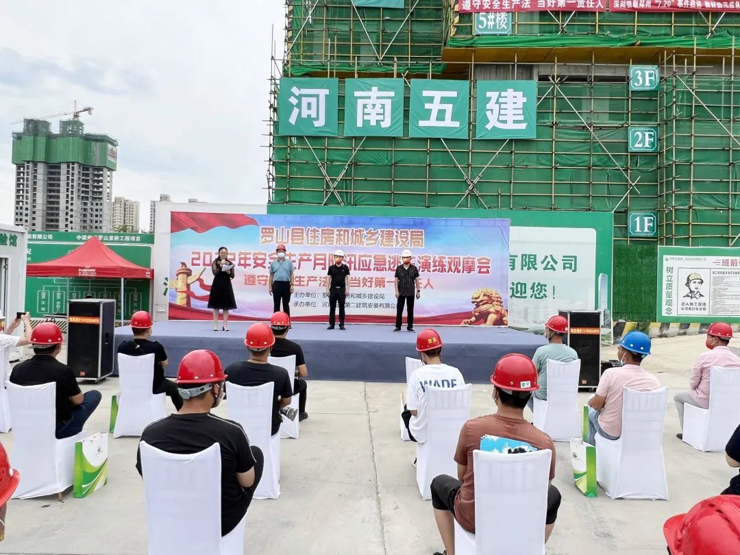 6月26日,羅山縣住建系統(tǒng)2022年“安全生產(chǎn)月防”汛應(yīng)急逃生演練觀摩會(huì)在公司第三項(xiàng)目部承建的羅山中梁首府項(xiàng)目順利舉辦。羅山縣住房和城鄉(xiāng)建設(shè)局副局長(zhǎng)楊長(zhǎng)進(jìn)、建筑工程安全指導(dǎo)站站長(zhǎng)陳軍、公司副總經(jīng)理吳建功以及羅山縣建筑施工企業(yè)安全負(fù)責(zé)人、在建項(xiàng)目經(jīng)理、項(xiàng)目安全負(fù)責(zé)人參加活動(dòng)。