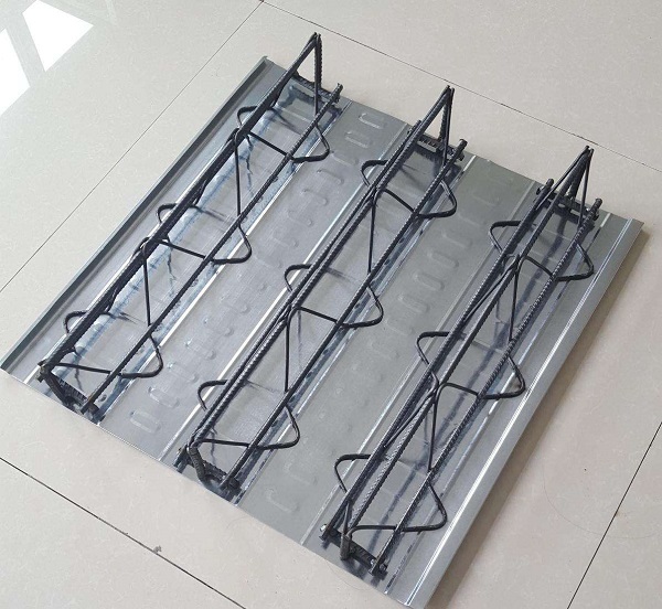 這種樓承板以鋼筋為主,作為上行。而下行主要是通過(guò)覆蓋,再通過(guò)焊接的方式組連接形成的桁架。鋼筋橫架需要與底板通過(guò)電焊的方式,組合成一種承重板,達(dá)到了承重的能力。